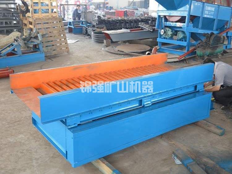 流槽底版是由天然膠做成的,橡膠墊的煽動是由電機推動減速器和煽動組織,驅(qū)使煽動架作上、下反復運動,進而橡膠墊也就作上、下健身運動,根據(jù)那樣反復運動使煤漿中的輕和重礦物質(zhì)分層次,沖積物持續(xù)保持疏松情況,有益于重礦物質(zhì)的收購 。煤漿歷經(jīng)2800Mm長的篩分全過程,重礦物質(zhì)和金粒堆積在溜格間的底端,輕礦物質(zhì)從尾端持續(xù)排出來。因為在溜格上設計方案了煽動組織,進而使流槽在長期的選別全過程中一直保持穩(wěn)定的篩分情況。