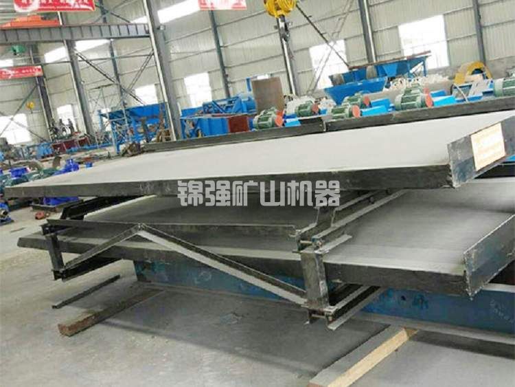 二、產(chǎn)品構(gòu)造及材料:6S雙層選礦搖床選用與6-S大糟鋼支撐架搖床同樣方式基座,兩基腳置放于大糟鋼基座上,大糟鋼厚鋼板上上升電焊焊接糟鋼支撐架用以置放搖臥室床,搖床面選用在6-S單面搖床床表面提升上一塊規(guī)格與原來床體同樣的床體,左右雙層用厚鋼板聯(lián)接支撐點(diǎn),他們的間隔400mm,自由空間約300mm。臥室床仍選用雙曲柄搖桿組織,彈黃盒在搖晃箱上,發(fā)動(dòng)機(jī)曲軸、支撐桿、彈黃、遙桿等構(gòu)件都相對(duì)應(yīng)增加了規(guī)格,材料更為標(biāo)準(zhǔn)。床體為玻璃鋼防腐床體,6S雙層搖床上下一層規(guī)格均為1823*1558*4520mm。上下一層床體同用下一層床體的一套調(diào)坡設(shè)備,選用搖晃肘板支撐。其調(diào)節(jié)座板和底座的轉(zhuǎn)動(dòng)斜線半經(jīng)擴(kuò)大至545mm,以融入弧形支撐點(diǎn)旋轉(zhuǎn)圓心點(diǎn)與牽引帶螺釘管理中心在同一平行線上。