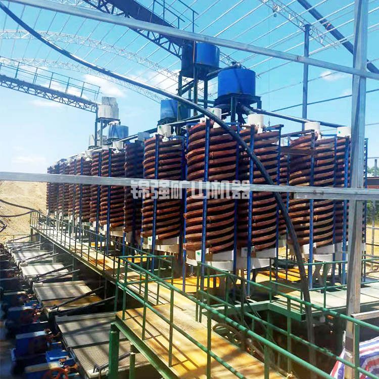 螺旋溜槽在細(xì)粒鐵礦分選中的應(yīng)用螺旋溜槽中的徑向環(huán)流對(duì)礦粒群按比重分起著主要作用。離心螺旋溜槽是為了調(diào)節(jié)渦流強(qiáng)度,實(shí)現(xiàn)強(qiáng)化分選而增加離心力場(chǎng)的設(shè)備。將磁場(chǎng)附加到普通溜槽的槽面上,可以得到磁力螺旋溜槽,這樣可以更有效地回收磁性物料。磁螺旋溜槽回收細(xì)粒磁性物料,結(jié)果表明磁螺旋溜槽提高了磁精礦產(chǎn)量,減少了尾礦損失。細(xì)粒級(jí)螺旋溜槽的特點(diǎn)是類似地毯的絨面選擇,能有效回收0.037~0.01mm細(xì)粒級(jí)金屬礦物,提高螺旋溜槽的處理能力。新型搖床的處理能力和分選效率不斷提高。螺旋溜槽不斷優(yōu)化結(jié)構(gòu)參數(shù),同時(shí)疊加磁力、離心力、機(jī)械振動(dòng)力等進(jìn)行強(qiáng)化分選。水力旋流器占地面積小,分級(jí)效率高。為了提高分級(jí)效率,采用新型耐磨材料,優(yōu)化結(jié)構(gòu)參數(shù),采用復(fù)合力場(chǎng)是旋流器的主要發(fā)展趨勢(shì)。離心選礦機(jī)采用離心力場(chǎng),加強(qiáng)分選過程,降低礦物回收粒度下限,逐步實(shí)現(xiàn)連續(xù)排礦。